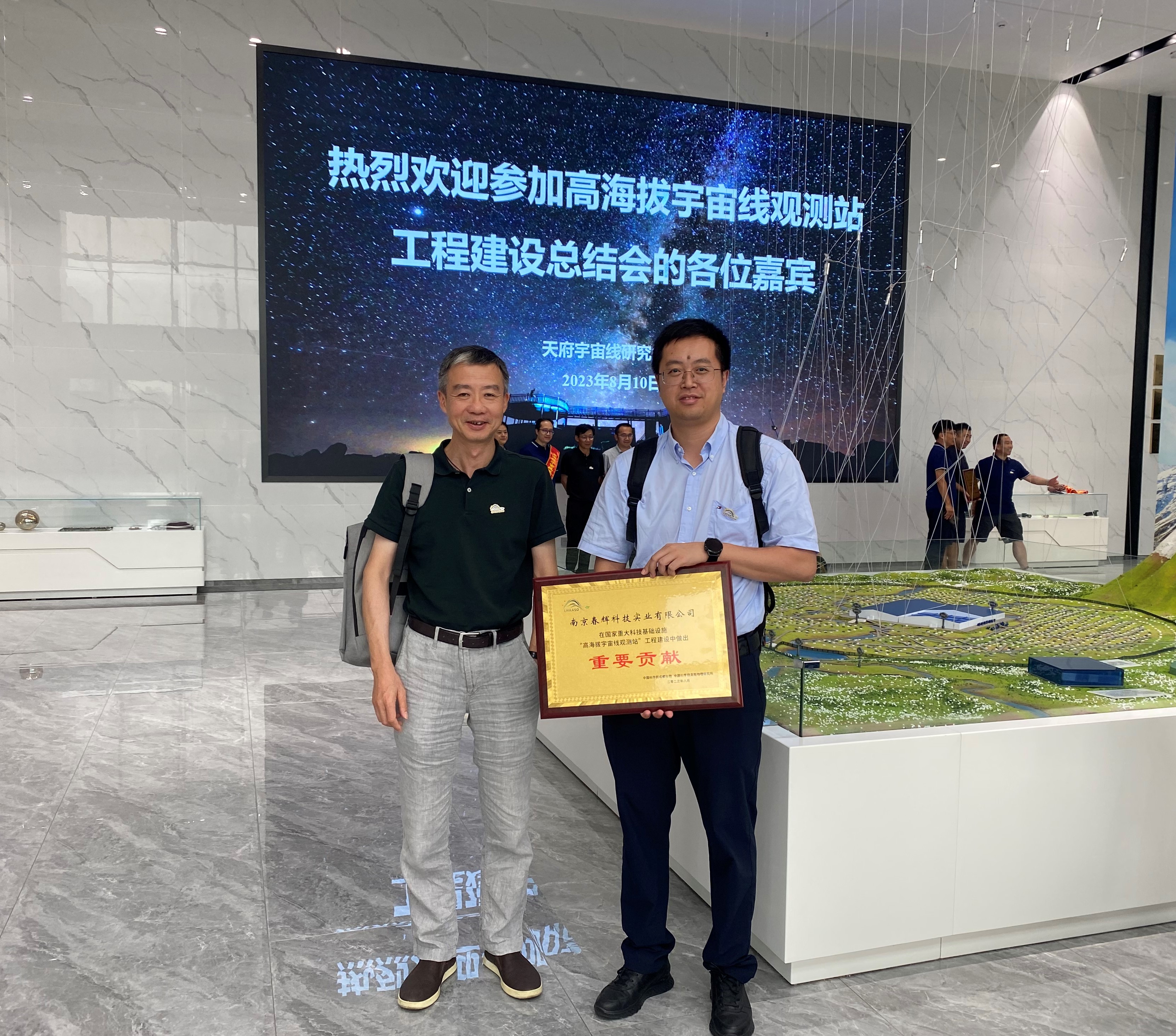 8月10日-11日,高海拔宇宙線(xiàn)觀(guān)測站(LHAASO)工程建設總結大會(huì )在天府宇宙線(xiàn)研究中心和四川稻城LHAASO觀(guān)測基地召開(kāi)。春輝公司獲高海拔宇宙線(xiàn)觀(guān)測站項目重要貢獻獎,公司總經(jīng)理殷志東帶隊參加此次會(huì )議并獲頒獎狀。